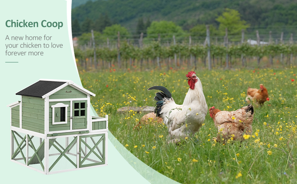 Organize your feather friends with this large chicken coop from PawHut. Features an elevated main house, a nesting box, and a large enclosed run to provide a resting and playing place for poultry, chickens, and rabbits. This large poultry coop also has an extra planting space for you to grow flowers and plants. This PawHut chicken run has sturdy galvanized mesh and lockable doors to protect your chickens from danger with a covered asphalt roof for outdoor use from sunny to rainy days.