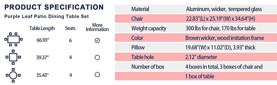 • Purple Leaf patio dining set offers you a great experience in dining time or in conversation.