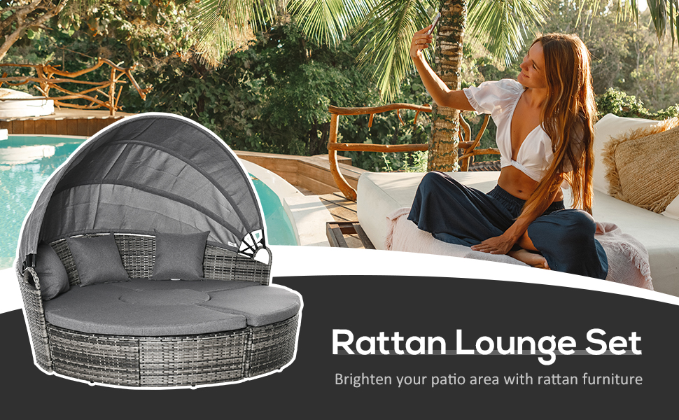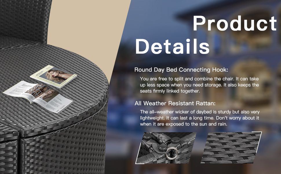 😄【VERSATILE LAYOUTS】The patio rattan lounge set can be a round daybed, or a sofa and coffee table set. Choose from a variety of different layouts and combinations as each piece can be easily moved and rearranged for optimum space efficiency.