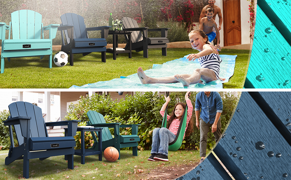 WEATHER RESISTANT AND FADE-PROOF: SERWALL Adiorndack Chair will never fade, splinter, crack, chip, peel, or rot when exposed to the elements.